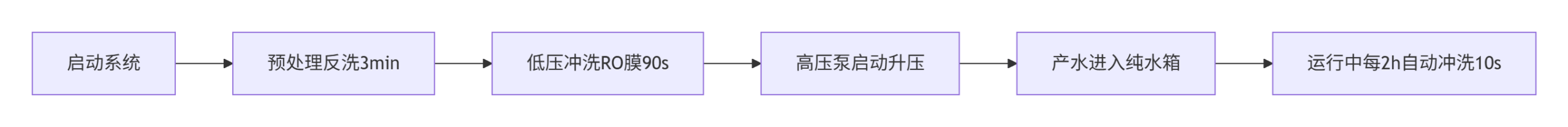 - 自动保护:高压泵高低压保护、膜浓差极化保护、水箱液位连锁控制
